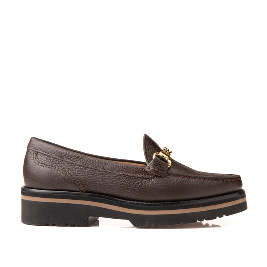 FB202 Ella Chunky Sole Loafer with Gold Snaffle Fitting- Chocolate Dollaro Leather
