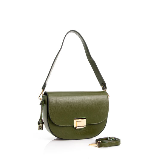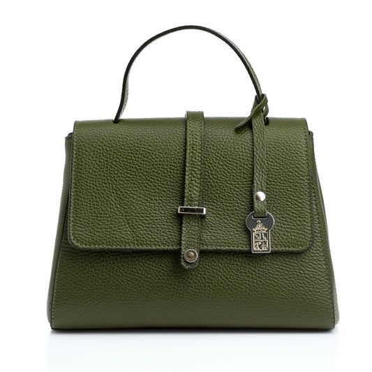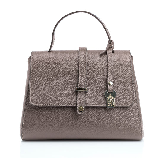 FB216 Liza Tan Handbag With 2/3 Flap, Tab Detail & Back Pocket- Dollaro Leather