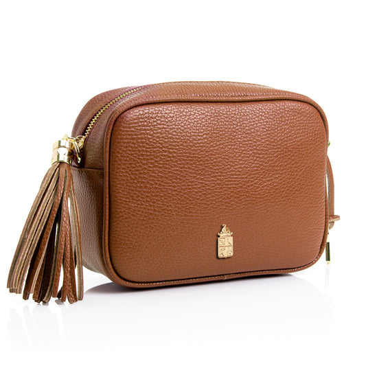 FB214 Caz Tan Camera Bag With Cross Body & Tassel- Dollaro Leather