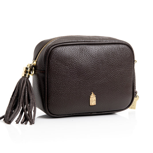 FB214 Caz Chocolate Camera Bag With Cross Body & Tassel- Dollaro Leather