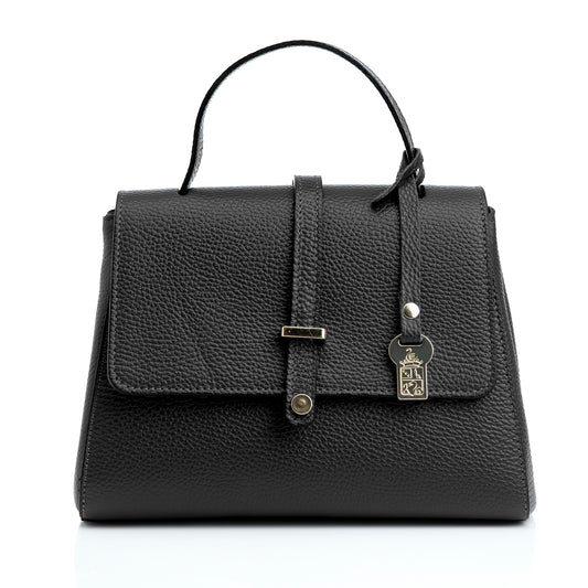 FB216 Liza Chocolate Handbag With 2/3 Flap, Tab Detail & Back Pocket- Dollaro Leather