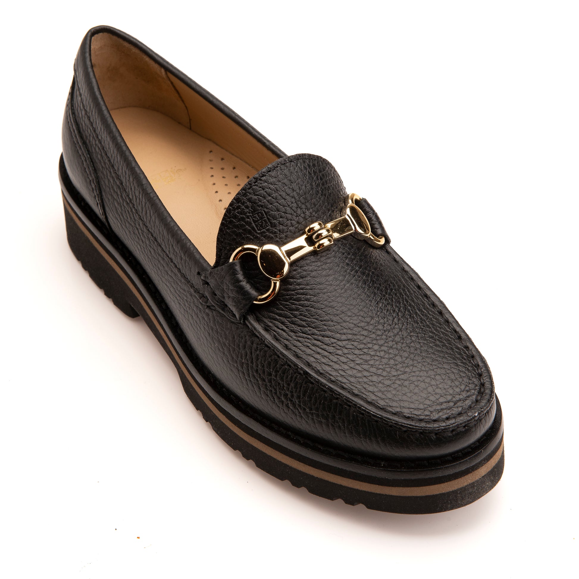 FB202 Ella Chunky Sole Loafer with Gold Snaffle Fitting- Black Dollaro Leather