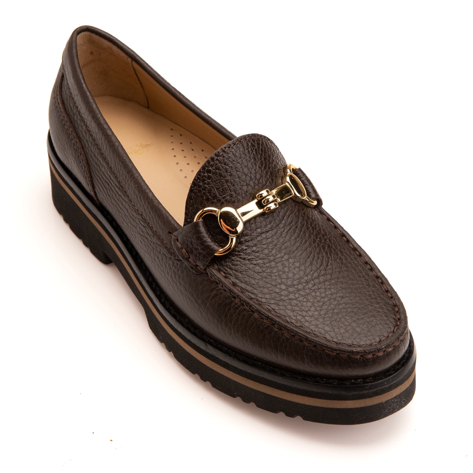 FB202 Ella Chunky Sole Loafer with Gold Snaffle Fitting- Chocolate Dollaro Leather
