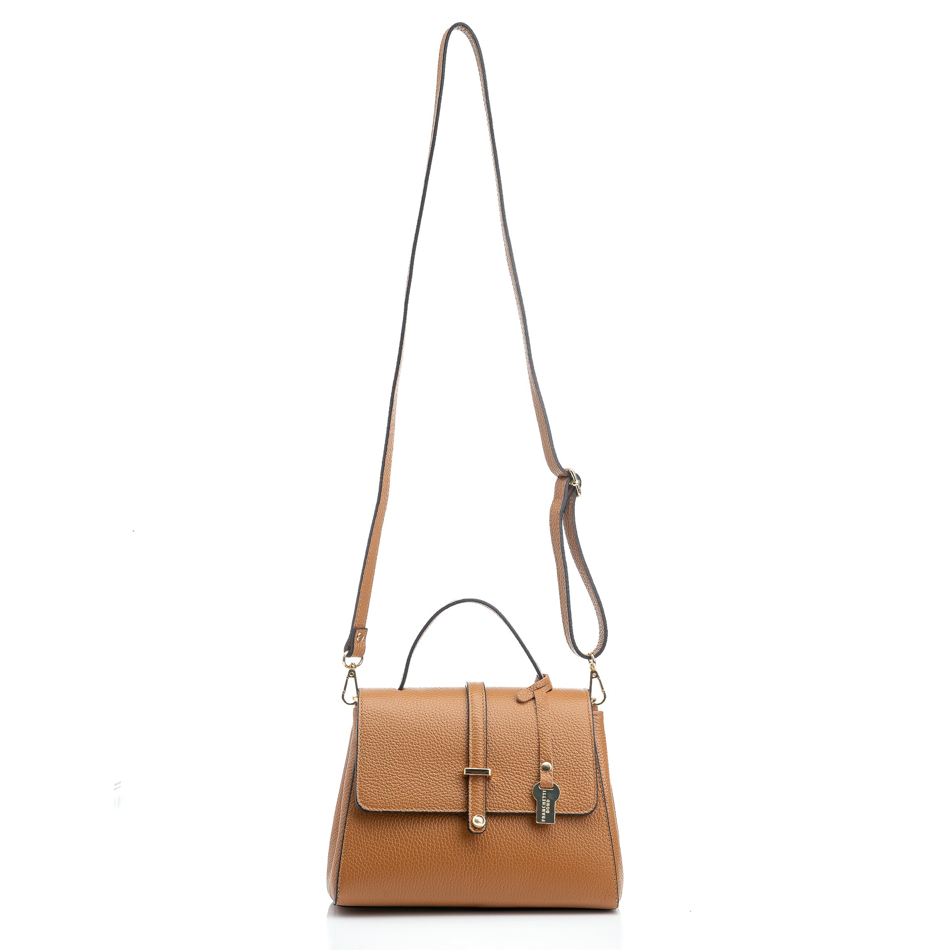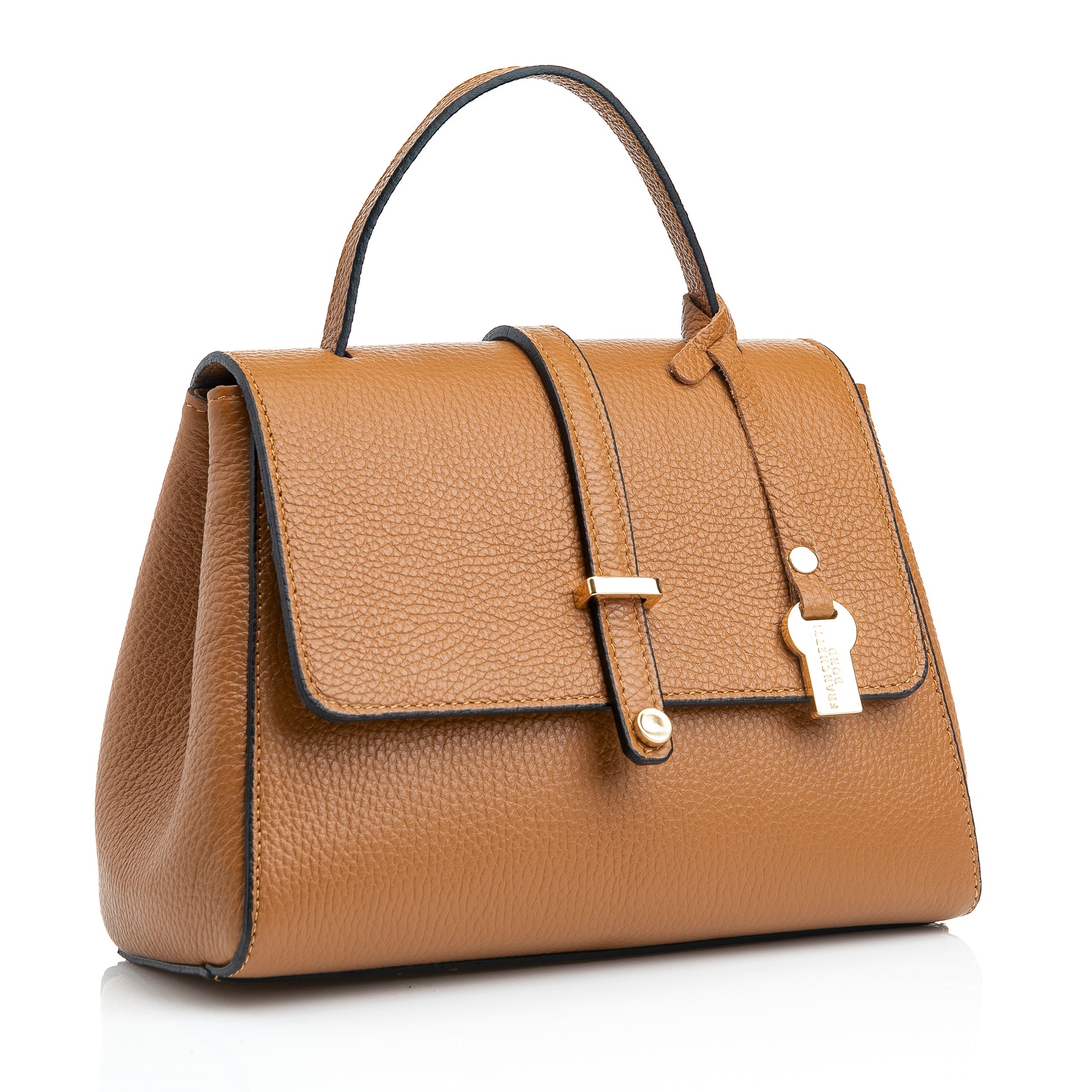 FB216 Liza Tan Handbag With 2/3 Flap, Tab Detail & Back Pocket- Dollaro Leather