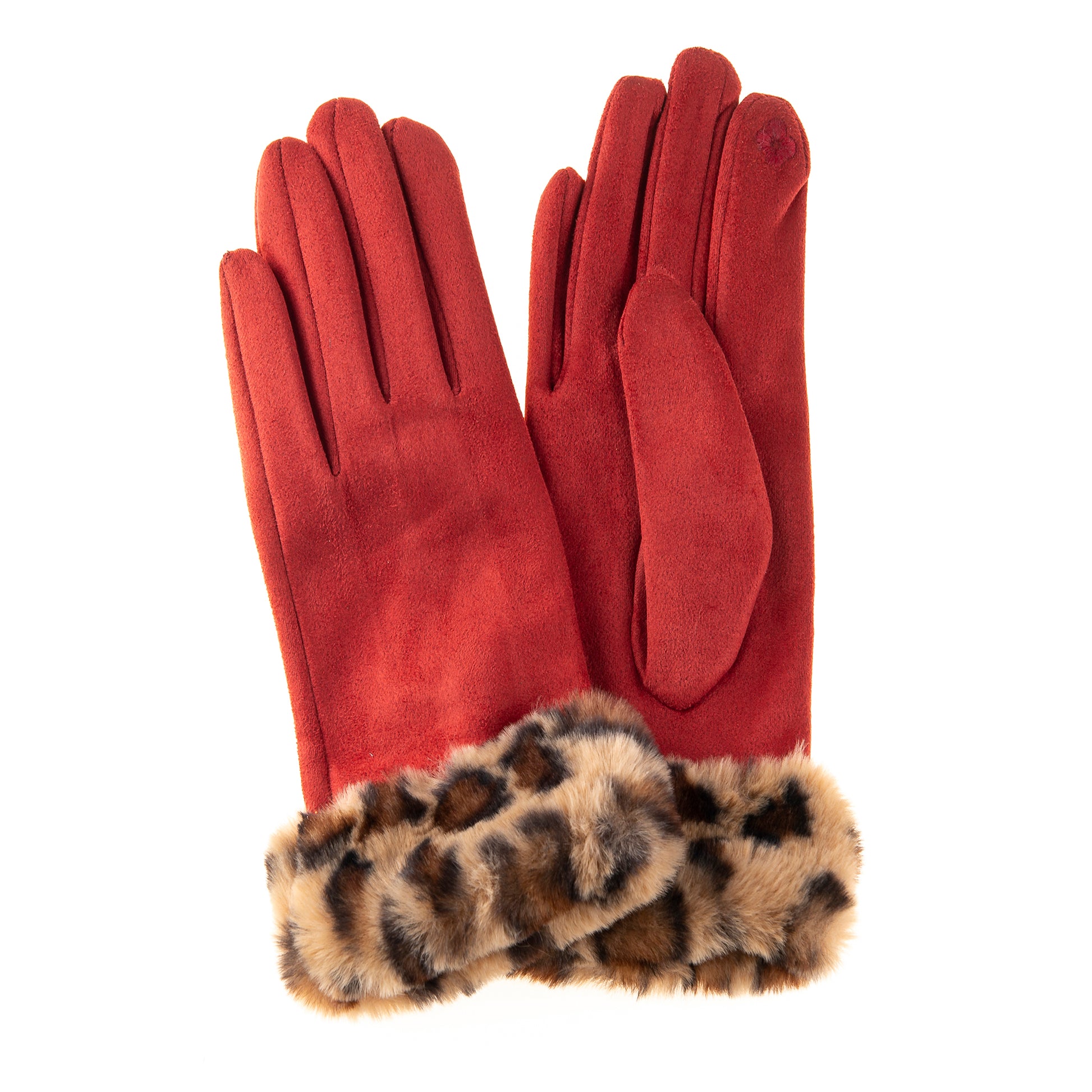 Martina FB79 Suedette Glove with Leopard Cuff Red/Brown Leopard