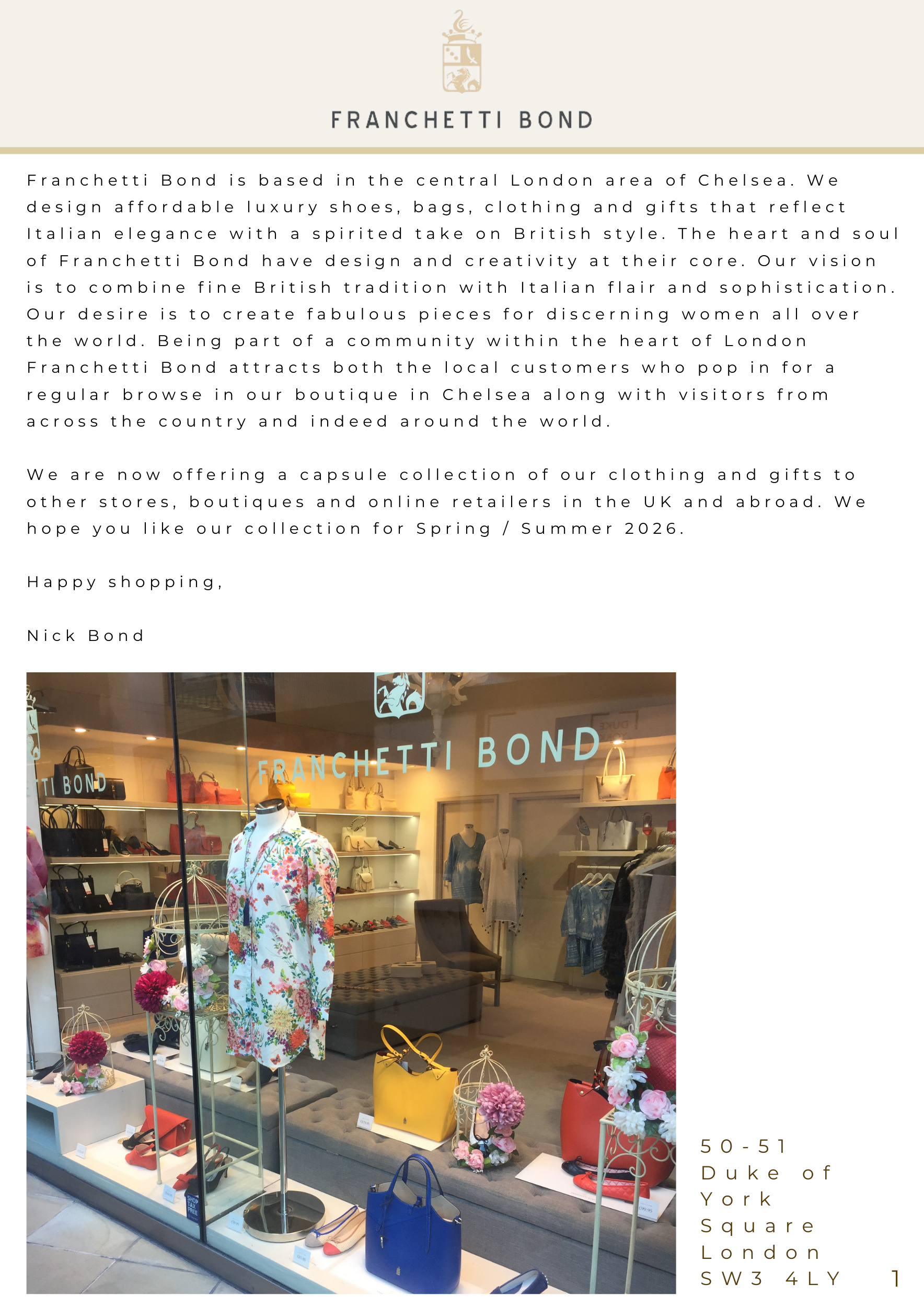 If you would like an emailed version of this Lookbook please contact: nick@sandringhamretail.com.